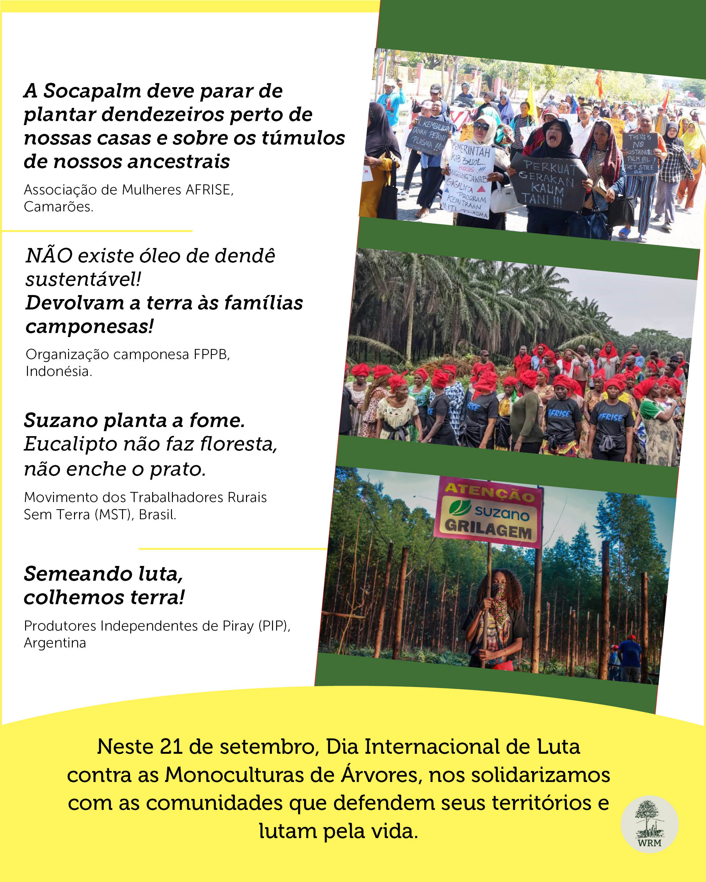 Neste 21 de setembro, Dia Internacional de Luta contra as Monoculturas de Árvores, nos solidarizamos com as comunidades que defendem seus territórios e lutam pela vida.